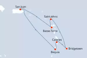Itinerário : San Juan, Bequia, Castries, Bridgetown, Saint Johns, Basse-Terre, San Juan