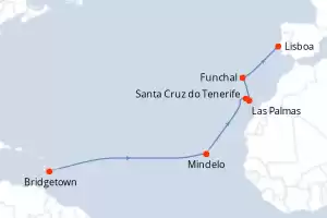 Itinerário : Bridgetown, Mindelo, Santa Cruz do Tenerife, Las Palmas, Funchal, Lisboa, Bridgetown, Mindelo, Santa Cruz do Tenerife, Las Palmas, Funchal, Lisboa
