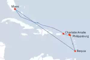 Itinerário : Miami, Charlotte Amalie, Philippsburg, Basse-Terre, Bequia, Miami