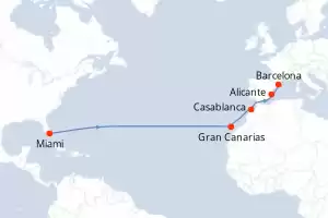 Itinerário : Miami, Gran Canarias, Casablanca, Alicante, Barcelona