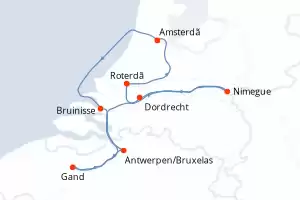 Itinerário : Amsterdã, Bruinisse, Gand, Antwerpen/Bruxelas, Nimegue, Dordrecht, Roterdã, Amsterdã