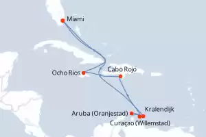 Itinerário : Miami, Aruba (Oranjestad), Curaçao (Willemstad), Kralendijk, Cabo Rojo, Ocho Rios, Miami