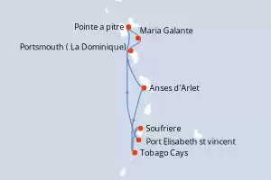 Itinerário : Pointe a pitre, Anses d'Arlet, Tobago Cays, , Soufriere, Port Elisabeth st vincent, Portsmouth ( La Dominique) , Maria Galante, Pointe a pitre