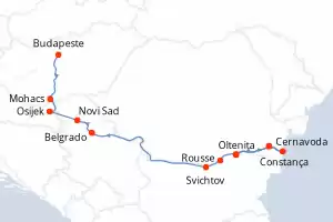 Itinerário : Viena, Bratislava, Budapeste, Kalocsa, Mohacs, Novi Sad, Belgrado, Donji Milanovac, Rousse, Giurgiu, Cernavoda, Constança, Cernavoda, Oltenita