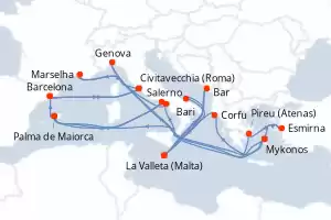 Itinerário : Barcelona, Civitavecchia (Roma), Marselha, Salerno, Mykonos, Genova, Mykonos, Esmirna, Pireu (Atenas), Corfu, La Valleta (Malta), Bar, La Valleta (Malta), Bari, Palma de Maiorca, Napoles, Palma de Maiorca, Barcelona, Civitavecchia (Roma)