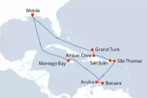 Itinerário : Mobile, Grand Turk, Amber Cove, San Juan, São Thomas, Aruba, Bonaire, Montego Bay, Mobile