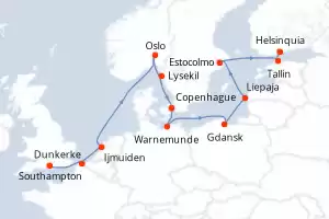 Itinerário : Southampton, Dunkerke, Ijmuiden, Oslo, Lysekil, Copenhague, Warnemunde, Gdansk, Liepaja, Estocolmo, Tallin, Helsinquia