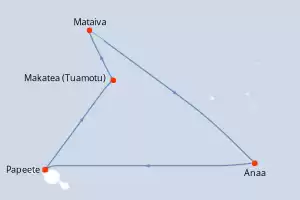 Itinerário : Papeete, Makatea (Toamotu), Mataiva, Anaa, Papeete