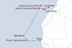 Itinerário : Las Palmas, Santa Cruz do Tenerife, Lanzarote, Santa Cruz de la Palma, Mindelo, Praia ( Cabo Verde), Dakar