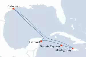 Itinerário : Galveston, Montego Bay, Grande Cayman, Cozumel, Galveston