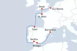 Itinerário : Sevilha, Portimão, Porto, Brest, St. Malo, Cherburgo, Rouen, Amsterdã
