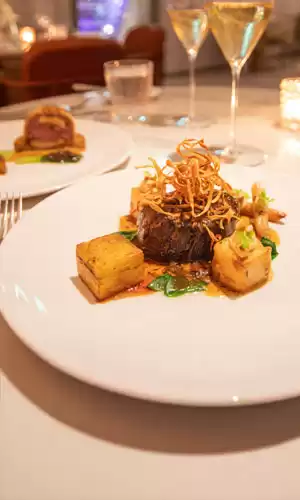 A bordo, os passageiros têm acesso a experiências gastronômicas excepcionais, elaboradas por chefs premiados com estrelas Michelin. No restaurante Le Voyage, criado por Daniel Boulud, os pratos refletem sabores de diversas culturas, como o risoto de lagosta ou a pavlova de frutas vermelhas. O ambiente intimista do restaurante, assinado pelo estúdio Jouin Manku, proporciona uma experiência sensorial completa. A carta de vinhos da Celebrity é uma das mais premiadas em alto-mar.