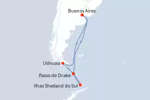 Itinerário : Buenos Aires, Ushuaia, Passo de Drake, Ilhas Shetland do Sul, Passo de Drake, Ushuaia