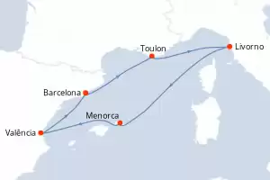 Itinerário : Barcelona, Toulon, Livorno, Menorca, Valência, Barcelona