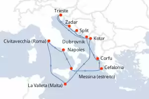 Itinerário : Civitavecchia (Roma), La Valleta (Malta), Kotor, Split, Zadar, Trieste, Dubrovnik, Corfu, Cefalonia, Messina (estreito), Napoles, Civitavecchia (Roma)