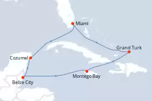 Itinerário : Miami, Grand Turk, Montego Bay, Belize City, Cozumel, Miami