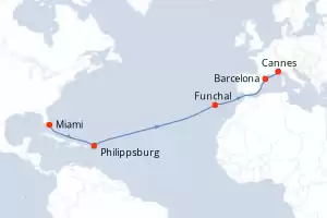 Itinerário : Miami, Philippsburg, Funchal, Barcelona, Cannes, Genova, La Spezia, Civitavecchia (Roma), Palma de Maiorca