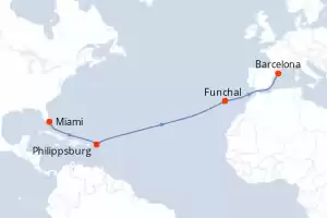 Itinerário : Miami, Philippsburg, Funchal, Barcelona, Cannes, Genova, La Spezia, Civitavecchia (Roma), Palma de Maiorca
