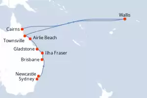 Itinerário : Sydney, Newcastle, Brisbane, Ilha Fraser, Gladstone, Airlie Beach, Townsville, Wallis, Cairns