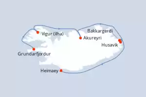 Itinerário : Grundarfjordur, Vigur (ilha), Akureyri, Husavik, Bakkargerdi, Heimaey