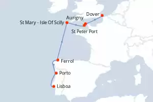 Itinerário : Lisboa, Porto, Ferrol, St Mary - Isle Of Scilly, St Peter Port, Aurigny, Dover