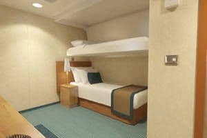 2 camas de solteiro convertíveis em uma cama de casal. Todas as cabines estão equipadas com ar condicionado, televisão, telefone, banheiro com ducha e WC. Todas as cabines são muito espaçosas.