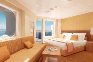 Essas cabines oferecem um equipamento muito completo e confortavel ao mesmo tempo que sao bem espacosas. Oferecem grandes armarios, ar condicionado, televisao, telefone e frigobar. O banheiro tem banheira e ducha. Poderao disfrutar de magnificas vistas desde o balcao.