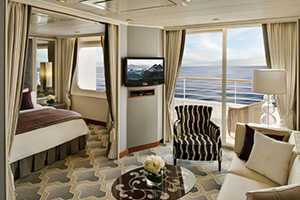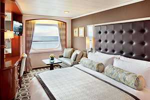 Um grande navio de luxo. Conta com 250 metros e capacidade para 1070 passageiros. Oferece diferentes opções de diversão.
