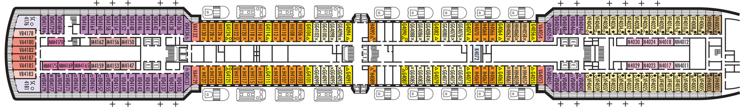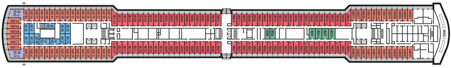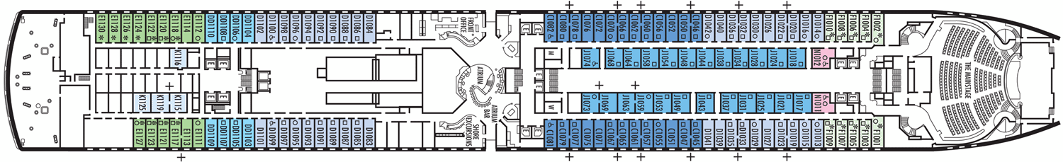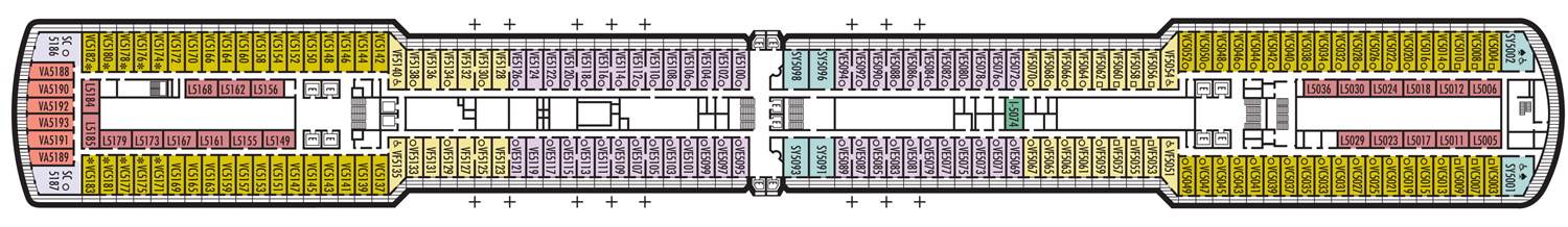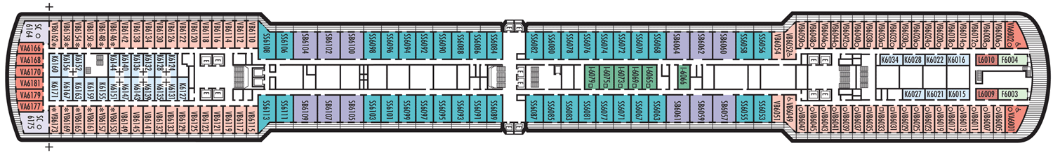 2 camas baixas convertíveis em uma cama Queen size, chuveiro. Aproximadamente 141 - 284 pés quadrados. Nota: Esta categoria está disponíel nos tamanhos Grande & Standard. A cabine inclui: Luxuosas camas com colchões Sealy ® Premium Euro-Top e finos lençóis de algodão. Roupões Deluxe e felpudos para uso durante sua viagem. Toalhas de algodão 100% Egípcio. Chuveiros Premium. Espelhos de maquiagem com ampliação 5X e secadores de cabelo com qualidade de salão de beleza. Sabonetes perfumados, loções, shampoo e outros produtos de banho Elemis Aromapure. Cortesia de frutas frescas mediante pedido. Elegante balde de gelo e bandeja para bebidas na cabine. TV de tela plana e DVD player. Serviços de quarto para Gelo, serviço de engraxar sapatos e serviço de abertura de cama. Nota - Alguns quartos da mesma categoria podem apresentar diferentes configurações e/ou instalações. As dimensões dos quartos são aproximadas. Por favor, confirme antes de agendar sua viagem.