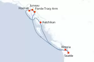 A costa do Alasca, extensa e íngreme é acessível por grandes navios apenas em portos determinados. Na verdade, muitas ilhas e geleiras dificultam a navegação. No entanto, as particularidades são impressionantes com os fiordes e muitas espécies animais, desde baleias até pinguins. Frequentemente, durante uma expedição no interior, pode encontrar alces, renas, raposas ou felizmente raramente ursos e lobos. A capital do Alasca é Juneau, acessível por mar através da passagem interior. Esta cidade tradicional e moderna é ideal para passear. Ao mesmo tempo, pode fazer compras, visitar as galerias, museus, ou fazer caminhadas no maior floresta do estado. Você pode admirar as deslumbrantes geleiras de caiaque e seguir o caminho do ouro que existia há mais de 100 anos. No sul do Alasca é o porto de Ketchikan; Esta antiga cidade vale a pena visitar para conhecer a atmosfera típica, com suas casas coloridas sobre palafitas e os vários totens tribais. As atividades giram em torno da natureza, entre uma expedição na floresta ou a pesca de salmão. Localizado a sudeste da península do Alasca, Anchorage é a maior cidade e um porto turístico. O clima é leve comparativamente ao resto do estado.