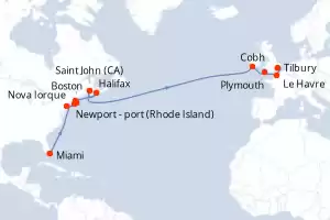 Itinerário : Miami, Nova Iorque, Newport - port (Rhode Island), Canal do cabo cod, Boston, Halifax, Saint John, Cobh, Plymouth, Le Havre, Tilbury