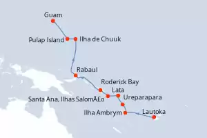 Itinerário : Lautoka, Ilha Ambrym, Ureparapara, Lata, Santa Ana, Ilhas Salomão, Roderick Bay, Rabaul, Ilha de Chuuk, Pulap Island, Guam