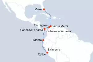 Itinerário : Miami, Santa Marta, Cartagena, Canal do Panamá, Cidade do Panamá, Manta, Salaverry, Callao